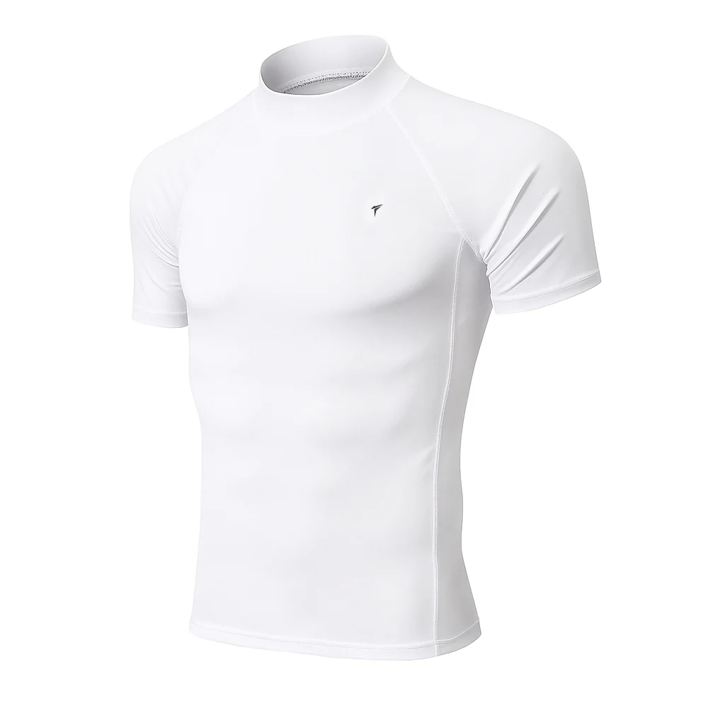 The Half Sleeve White Mock Neck Compression Tee combines comfort, performance, and style. Made from stretchable, moisture-wicking fabric, it supports muscles and keeps you cool during workouts or sports. Its sleek mock neck design adds a modern athletic touch for training or casual wear.
